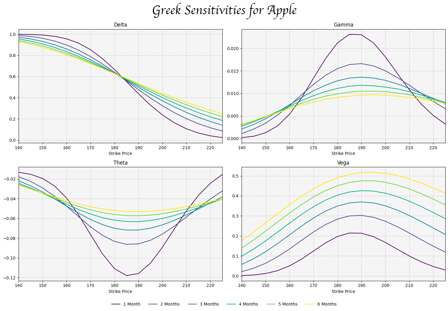 Visualize the Greeks for deeper insight into how options behave as market conditions change: