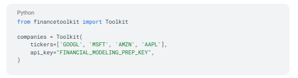 Below, I'll discuss the core features of the Finance Toolkit. If you wish to see more examples, visit the Finance Toolkit GitHub repository, where you'll find detailed examples and visualizations.