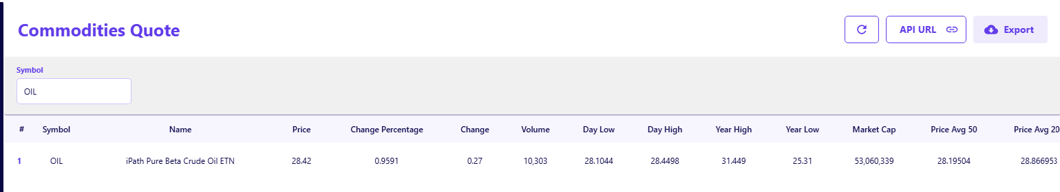 The FMP Commodities Quote Short API provides instant quotes, price changes, and trading volume data—ideal for analysts modeling near-term sector risks and building high-frequency alerts.