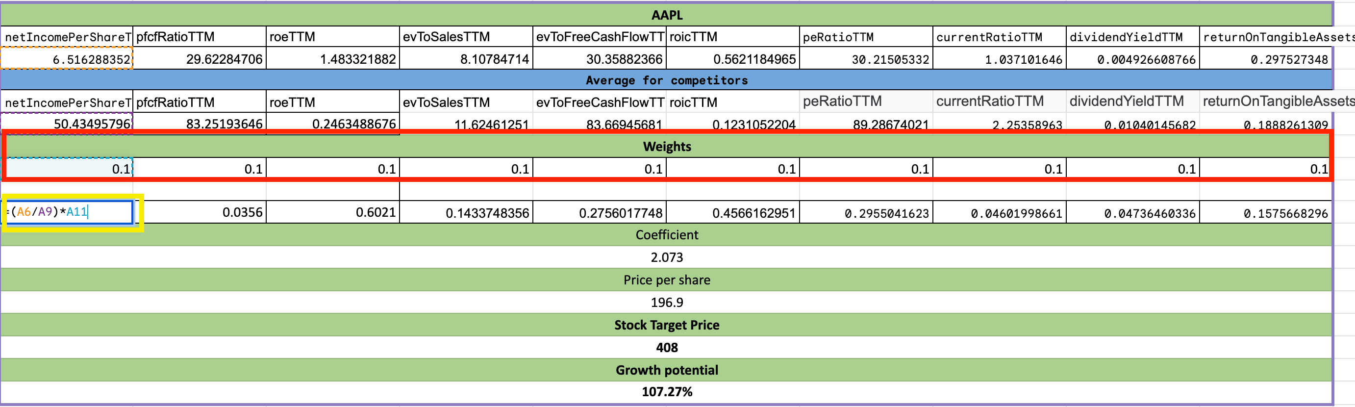 Multiples model in Excel using FMP data.